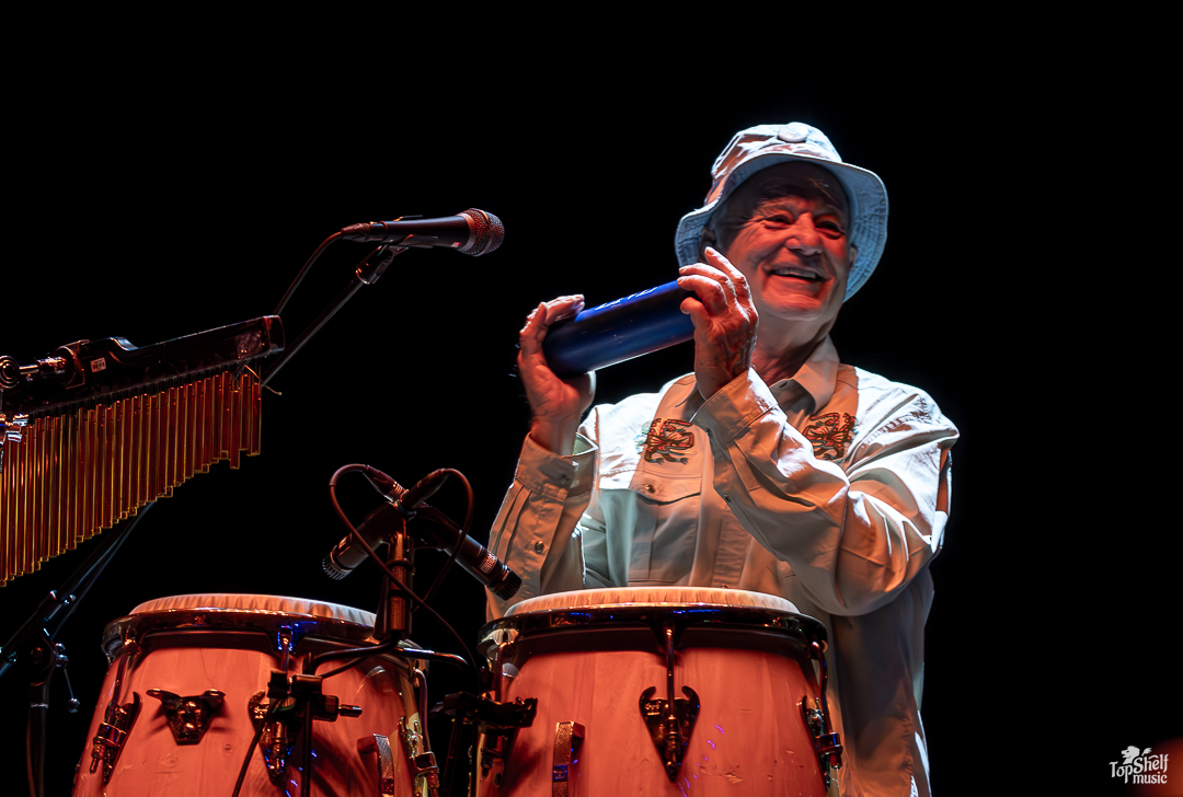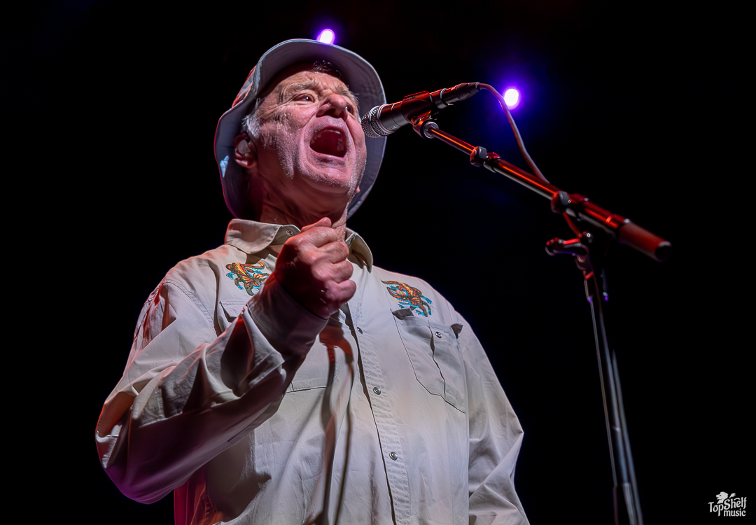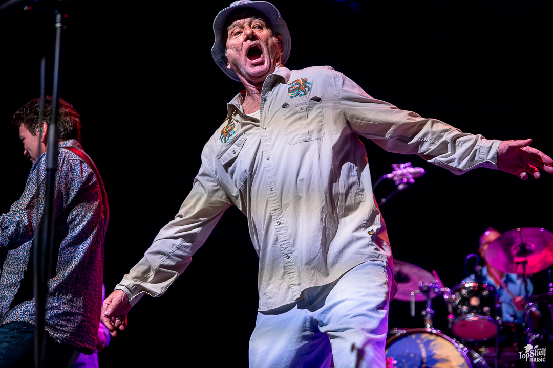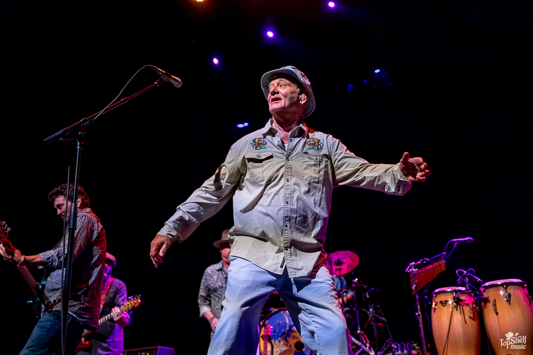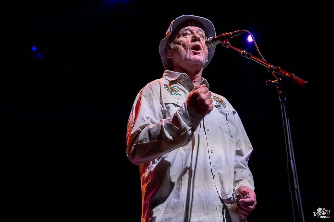 As I had no idea what to expect. The stage had two drum sets and congas for percussion, with several guitars and a piano. Was Bill Murray going to sing? Play? Both? The lights went down again and we all got our answer as the main man, wearing a Caddyshack-esque bucket hat (at least in my mind), took his place behind the congas at the back of the stage, letting his Blood Brothers steal the show for a bit. From dueling guitars to wicked solos, these players can WAIL; this is the kind of performance blues-lovers dream about. By song two, Bill Murray walked up to the mic to do his own rendition of “Waiting” by The Guess Who. He begged, he pleaded… he’s just so TIRED of waiting… the way Bill Murray keeps a stone-cold serious demeanor while going over-the-top in delivery is just comedic perfection. I couldn’t keep it together between laughing fits.
