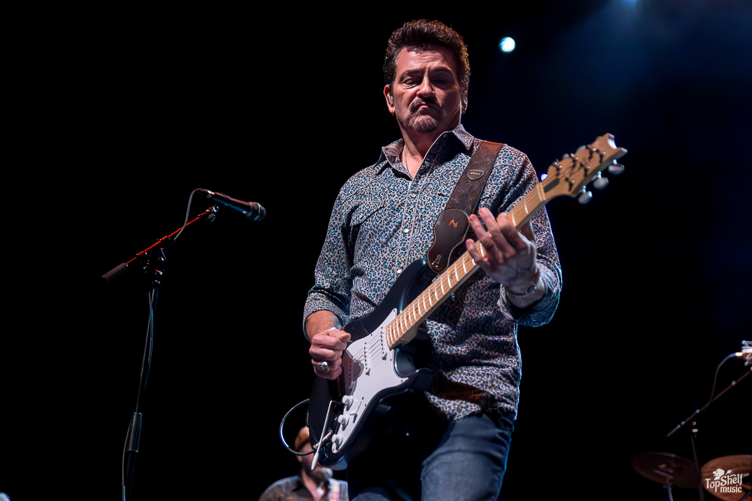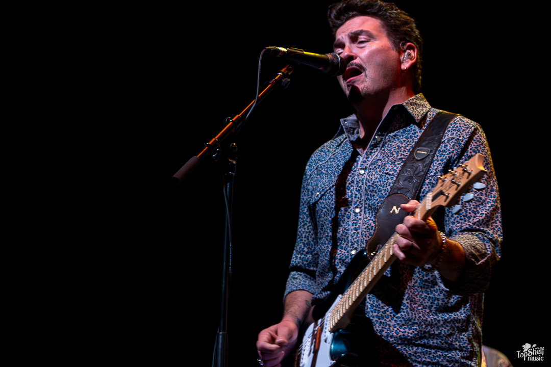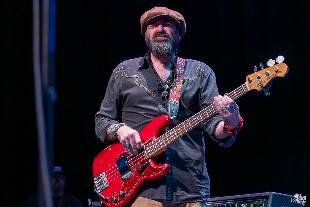 Performing at The Sound in Del Mar (like literally within the Del Mar Fairgrounds), there couldn’t have been a classier joint to host this celebrity A-lister and his all-star players. The new venue house is two-story, with standing room in front of the stage and a seated balcony up top. To the left as you walk in the place, concert-goers can grab libations from the chic bar or choose incredible options from the many food stands; we’re talking mini tacos, bao buns, and beyond. Being my first time in the place, I noticed the ceiling rafters shaped like ocean waves, the plasma TVs in the lounge areas playing surf videos between ones set to stream the live stage, and the subtle lighting that gives the place a Palm Desert 1950s vibe.