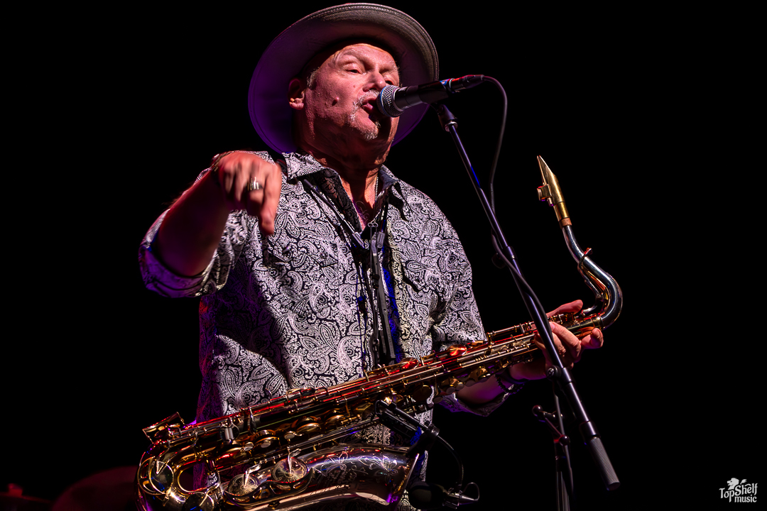 Shortly after I arrived, the opening act came on, consisting of players who would later be part of Bill Murray’s ensemble. Leading the way was Jimmy Carpenter, a skilled saxophonist who has a way with singing the blues. From upbeat ditties to low-tempo, toe-tappin’ tunes, the Jimmy Carpenter Band was a welcome warmup for what lay ahead.