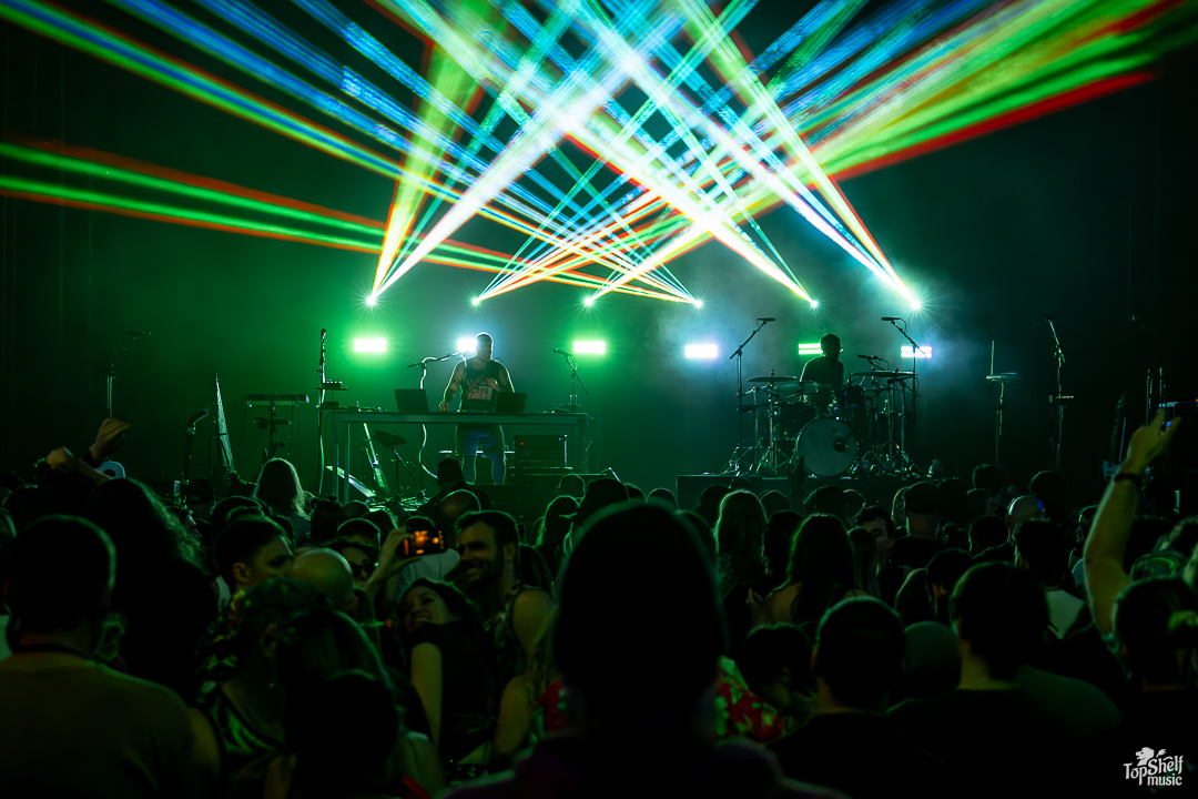 Laying the foundation with bassy didgeridoo vibrations out his mouth hole, Honeycomb can emulate a four-piece band with just his voice — it’s pretty insane! By the time Dirtwire took the stage, everyone was ready to dance. With soft lighting silhouetting players Evan and David, the electric beats were laced with violins and woodwind instruments, and everyone was all for it. If you weren’t with friends, you were making them. Multiple guests joined the band, including Honeycomb who left everyone’s jaw on the floor with an extended beatboxing jam sesh. At the end of the set, Dirtwire played their banger “Stranger” before inviting both members of The Floozies to perform their latest collab together, “Neon Sundown”.