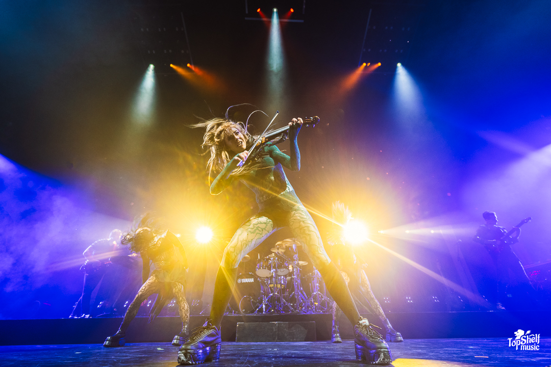She danced, leapt, twirled, and flew across the stage — all while never missing a beat on her violin. Her mix of classical, pop, and electronic music creates a bubbly atmosphere, especially when sandwiched between two heavier rock acts like on this night.