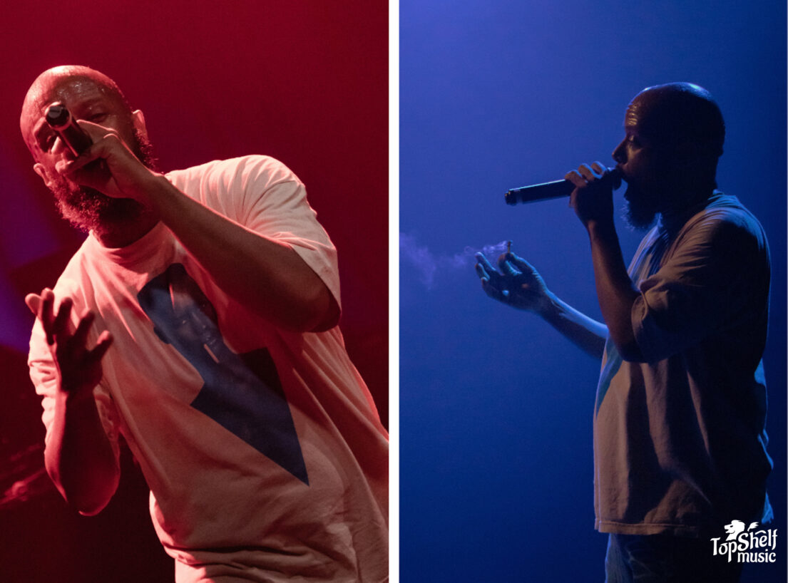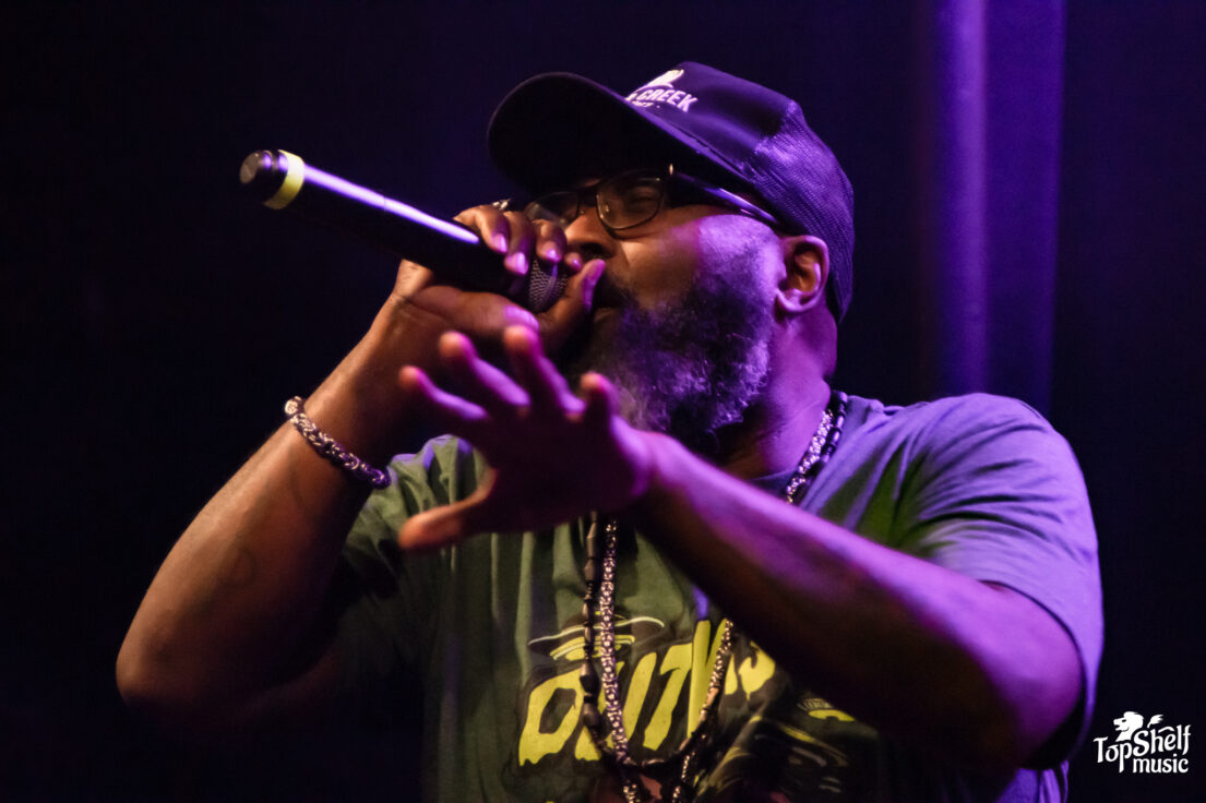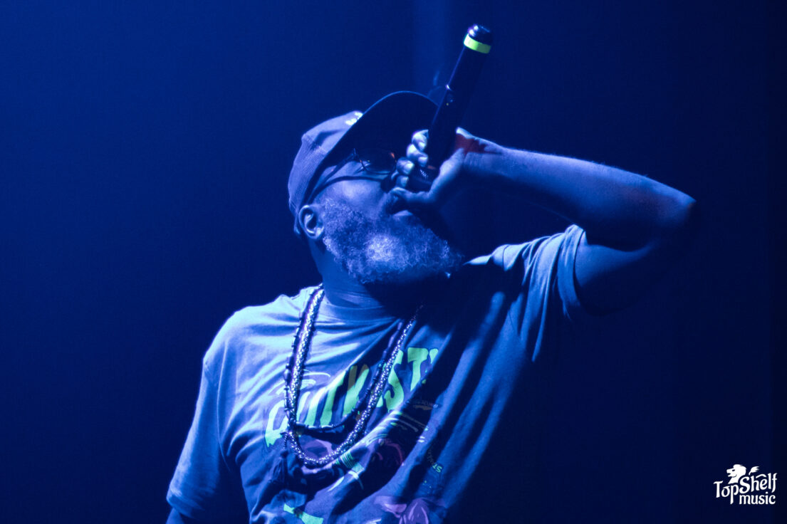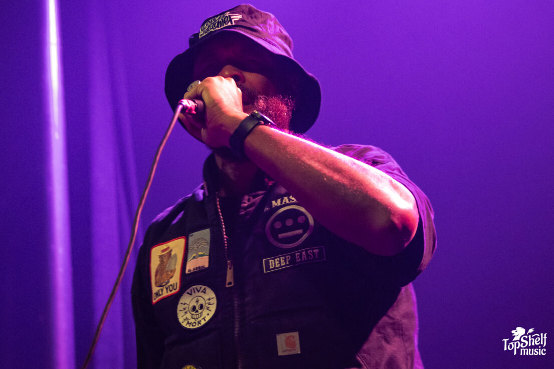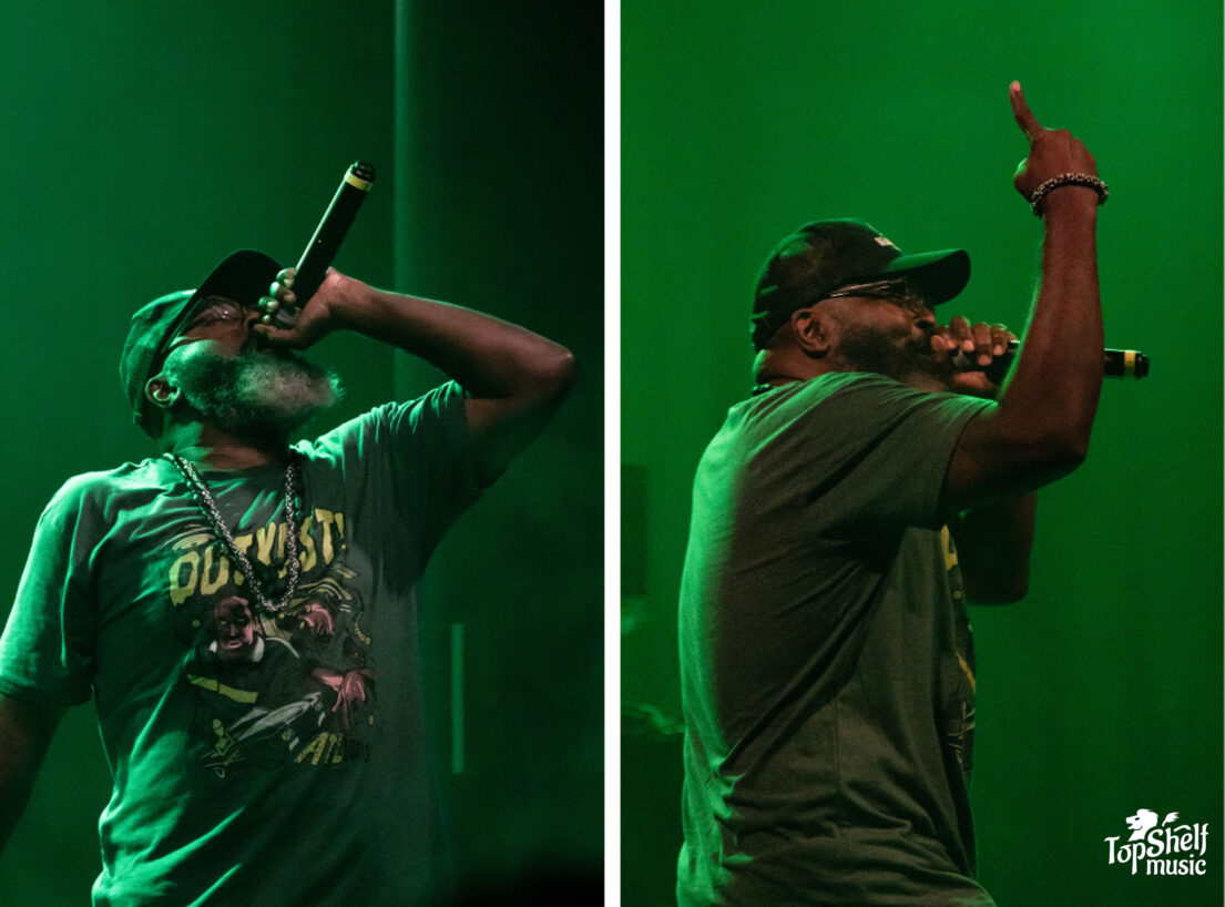 Opening the night, CunninLynguists members Kno, Deacon The Villain, and Natti took the crowd back to the early 2000s, shifting their expansive discography into a 30-minute set. Tracks like “Lynguistics” from their 2001 debut Will Rap For Food sparked instant excitement, with the crowd cheering like they hadn’t heard the song in so long. They continued weaving through eras of favorites with “Drunk Dial” from Strange Journey Volume Three and the emotionally rich “Beautiful Girl” from A Piece Of Strange.