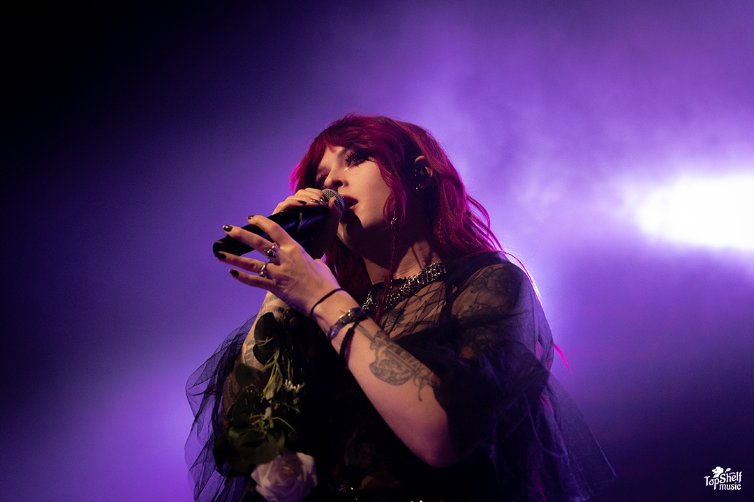 Up third was Mothica, the beautiful queen of moths — the gloom pop princess. She lulled the crowd into a trance from the first song, like numbing the crowd to all the emotions that Until I Wake had just unleashed. Mothica is very personal onstage, explaining this night the meaning of “emo butterflies” — I mean, moths — and getting vulnerable before her song “forever fifteen”. I’m so glad I caught her on this tour after everything she has been through!