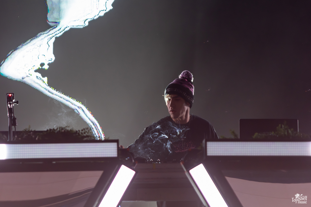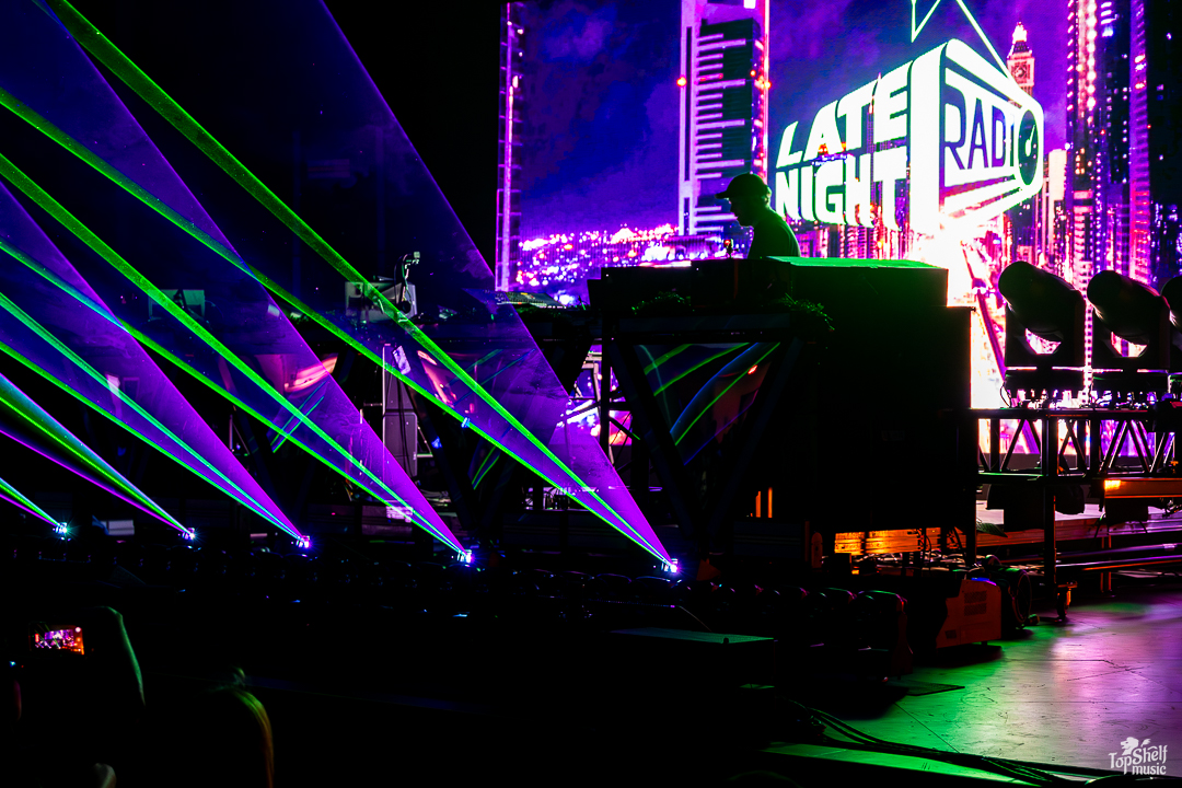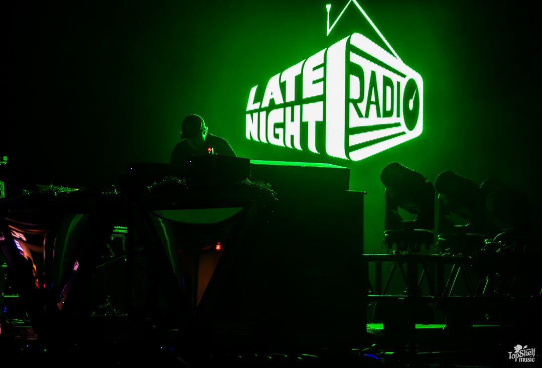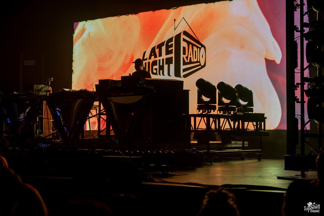 Walking in, OkayJake was already spinning, meaning that we missed Spenny’s and Blookah’s blocks. Our b. Had to go look at a different form of art first. The visuals and dance floors picked up a bit for direct support deejay Late Night Radio, spinning vibey bangers like “Tree Trunks” and the hauntingly hip hop-influenced “Blindfold Yourself” (originally featuring Daily Bread).