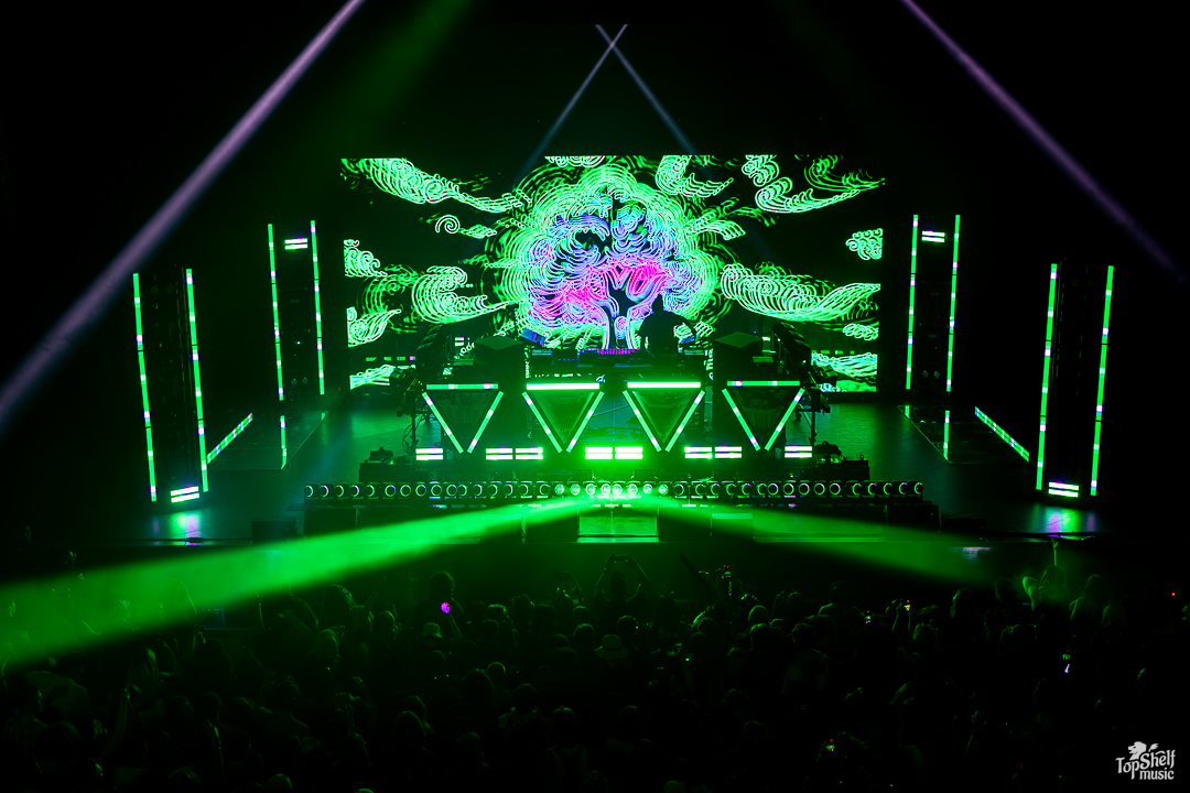 The ebbs and flows, the pullbacks and the bass drops — they were all a coordinated effort. And, if you wanted to be a part of the show, attendees could purchase little leafy hair/hat clips with gems that lit up in sync to the music. The whole experience, paired to mesmerizing visuals on the screen behind INZO, was incredible (even if you weren’t on drugs, cough, me).