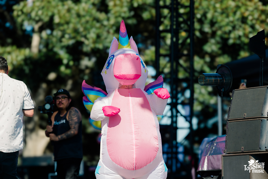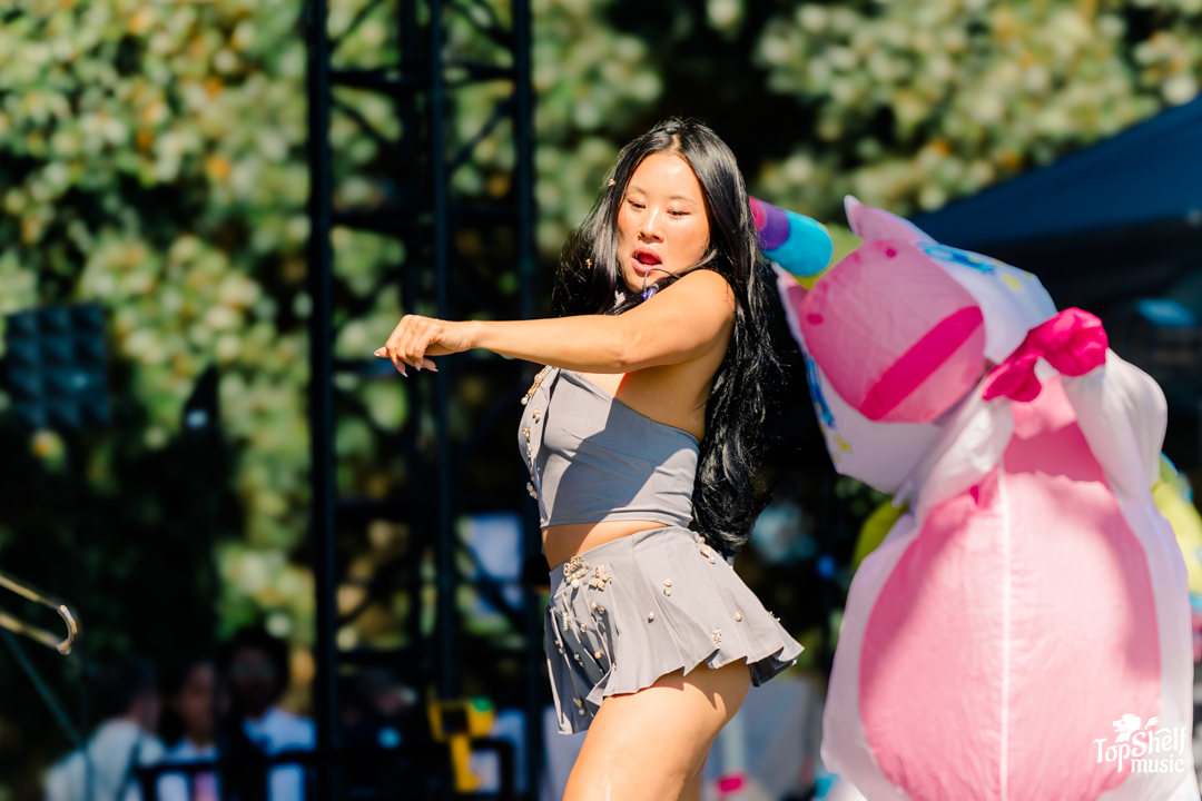 Divina (one of my favorite singers who’s also part of the band Boostive) and Helena Holleran opened things up with their crazy good R&B-soul that made everybody pause like, “yo… who is THAT singing?” Straight goosebumps. Then, Doah’s Daydream came through with her signature island-grunge vibe, mixing tropical warmth with gritty edge. She fired off with her bold, high-energy anthems, then surprised us all by flipping into a new awesome K-pop-inspired banger that brought five adorable dancers onto the stage and, of course, had her unicorn friends holding it down both onstage and in the crowd.