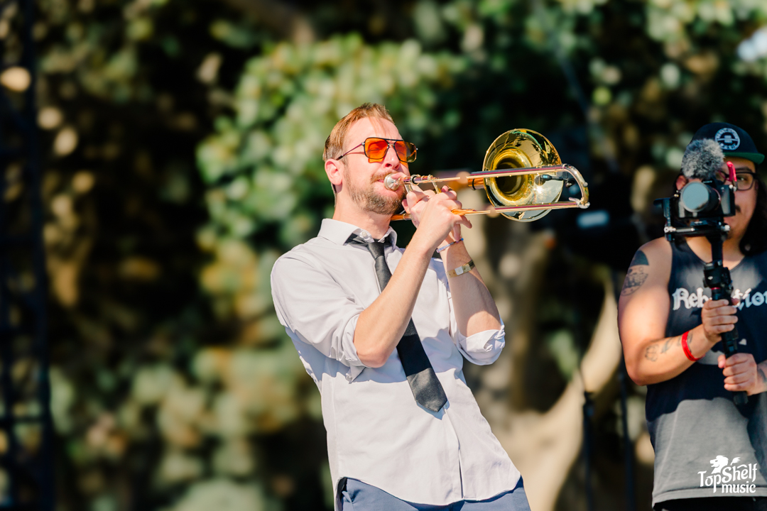 Later in the evening was the final run of bands that took us into the sunset — you know, the heavy-hitters. Up next? The Elovators. I swear, I light up every time they’re on a lineup! I play their stuff nonstop and I don’t think I’ve ever skipped a single song. They came all the way from Boston to bring Mission Bayfest their smooth, feel-good reggae rock set. And, honestly, it’s always a struggle for me to photograph them because the second they start playing, I’m dancing way too hard!