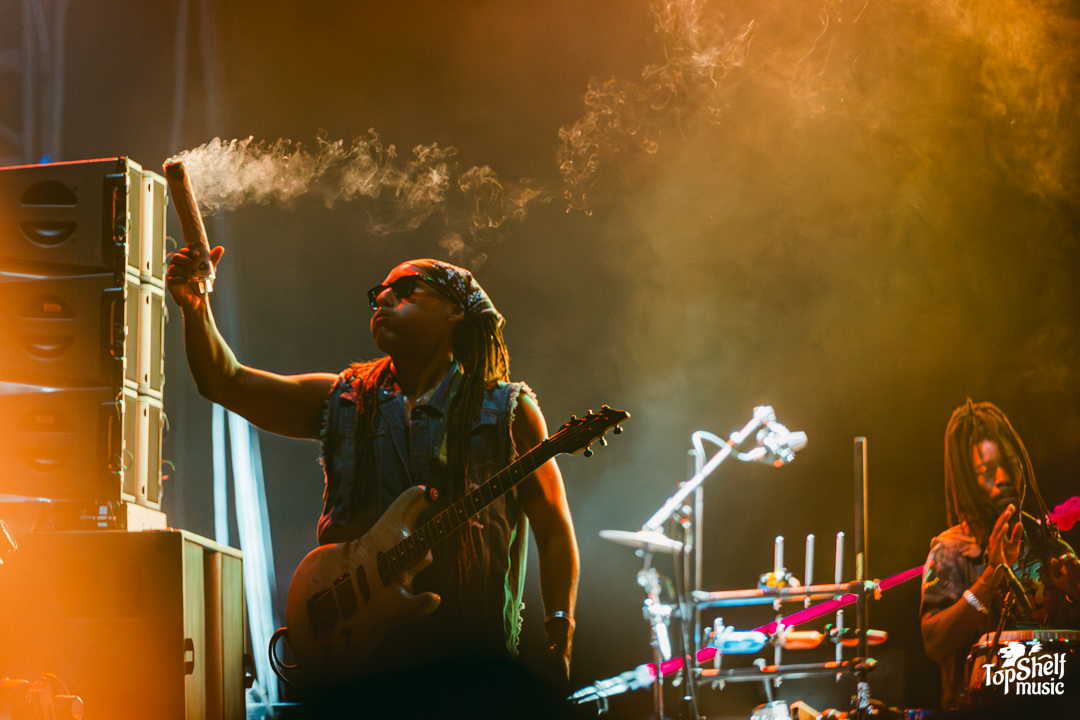 After the early afternoon jams from DJ Selekta Dubstin and Flailing Idiot, Jesse James Pariah got the crowd swaying with some awesome tunes. Then, things got heavy. Hip hop icon KRS-One hit the stage, delivering some serious consciousness and fire. We’re talking full-on freestyles that had the whole place locked in. Then the reggae rock train kept rolling with DENM and Skegss with upbeat sets that totally prepped the crowd for the loaded day to come.