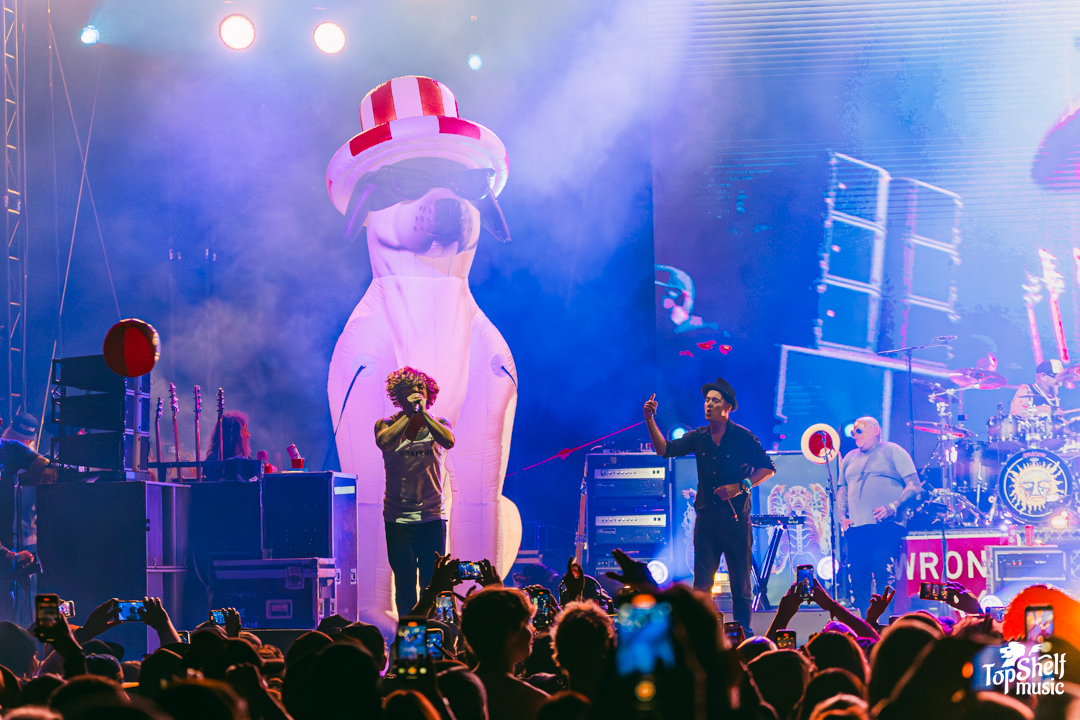 As the sun began to set, the Steel Pulse‘s set was absolutely incredible, delivering classic after classic from their 40-year history. The entire performance radiated passion and talent. But the night belonged to Sublime! With Jakob Nowell leading the charge, the show was absolutely epic, playing all the essential hits, like “Wrong Way”, “What I Got”, “Santeria”… and you know we were all singing every single word as the band went along! They even brought out two giant inflatable dogs, including a Dalmatian — a nod to Lou Dog! The wildest moment came when Jakob wrapped the set, took off with zero hesitation, and sprinted straight into the bay for a swim with his fans.