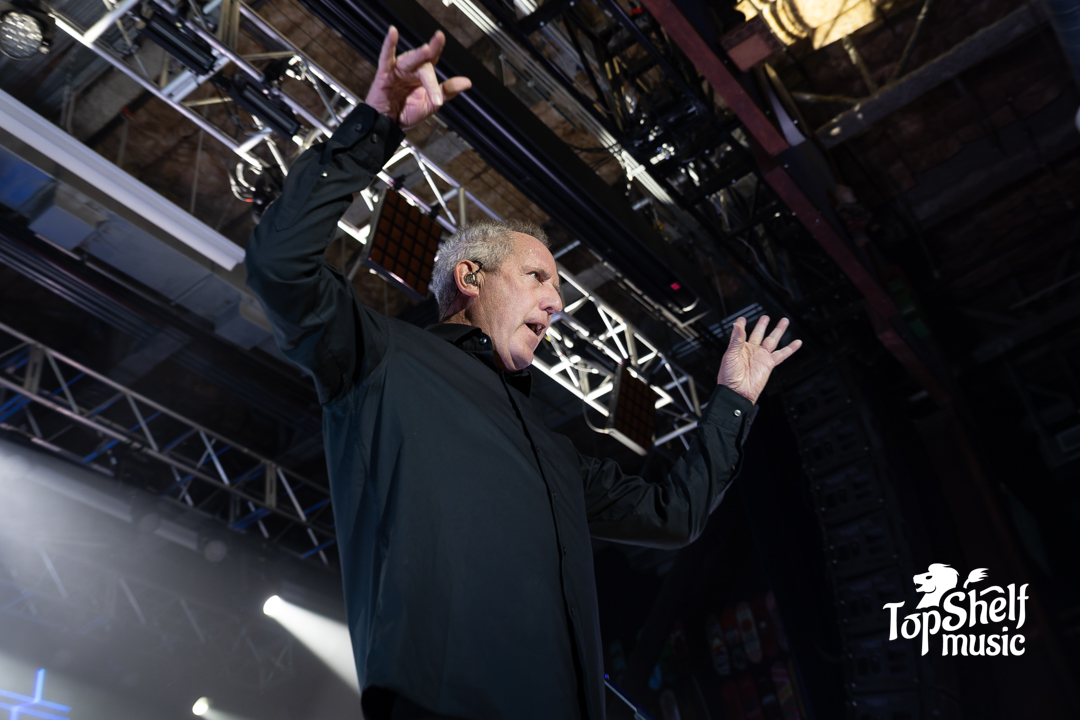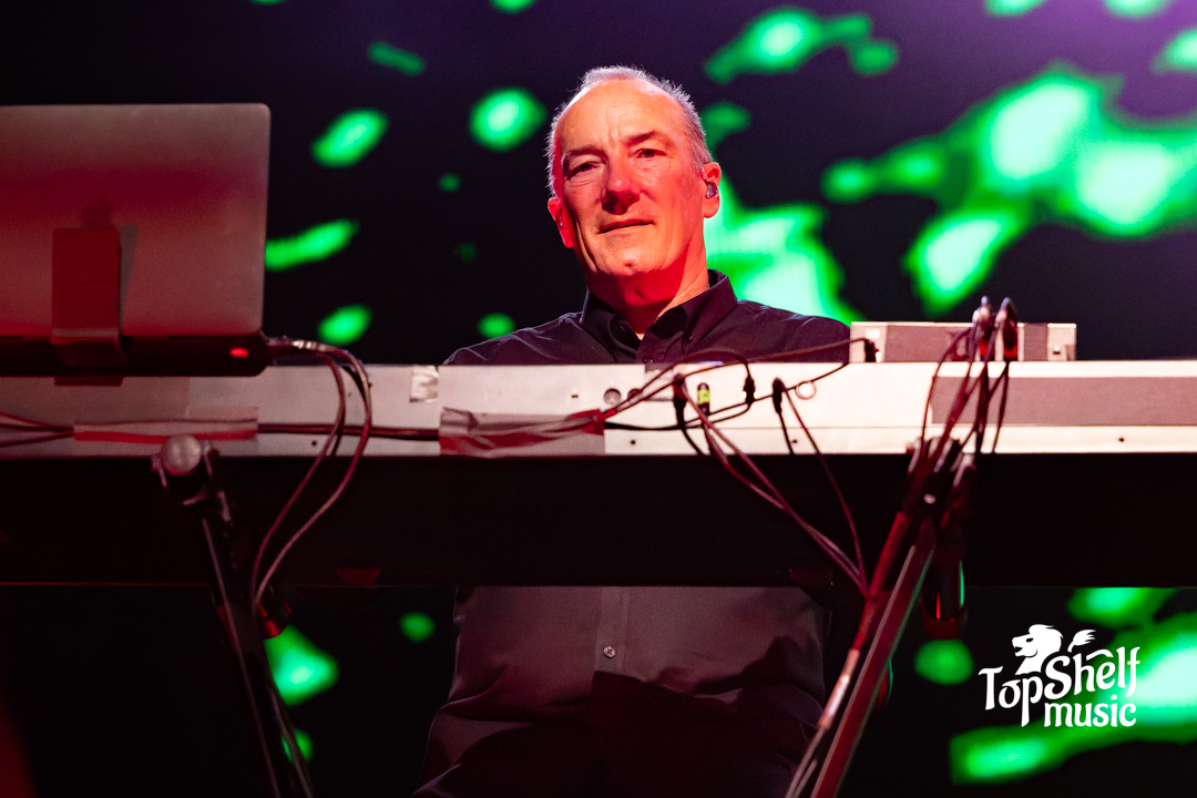 What really made this show work, though, was the energy and genuine enthusiasm radiating from the stage. Andy McCluskey, in particular, performed like a man half his age. From the moment he walked out, he was moving, dancing, engaging with the crowd, and he never let up. There’s something infectious about watching someone who clearly still loves what they do and Andy’s energy spread through the entire venue. Multiple times during the night, he had the mostly 50+-something sold-out crowd jumping up and down hard enough to literally shake the floor of the House of Blues.