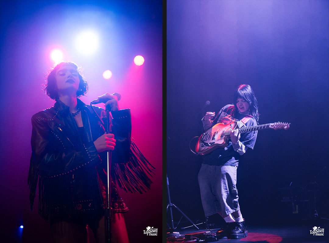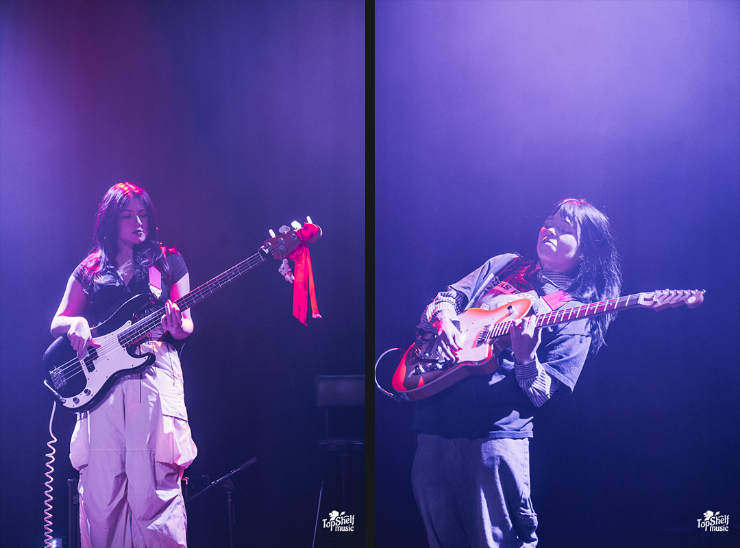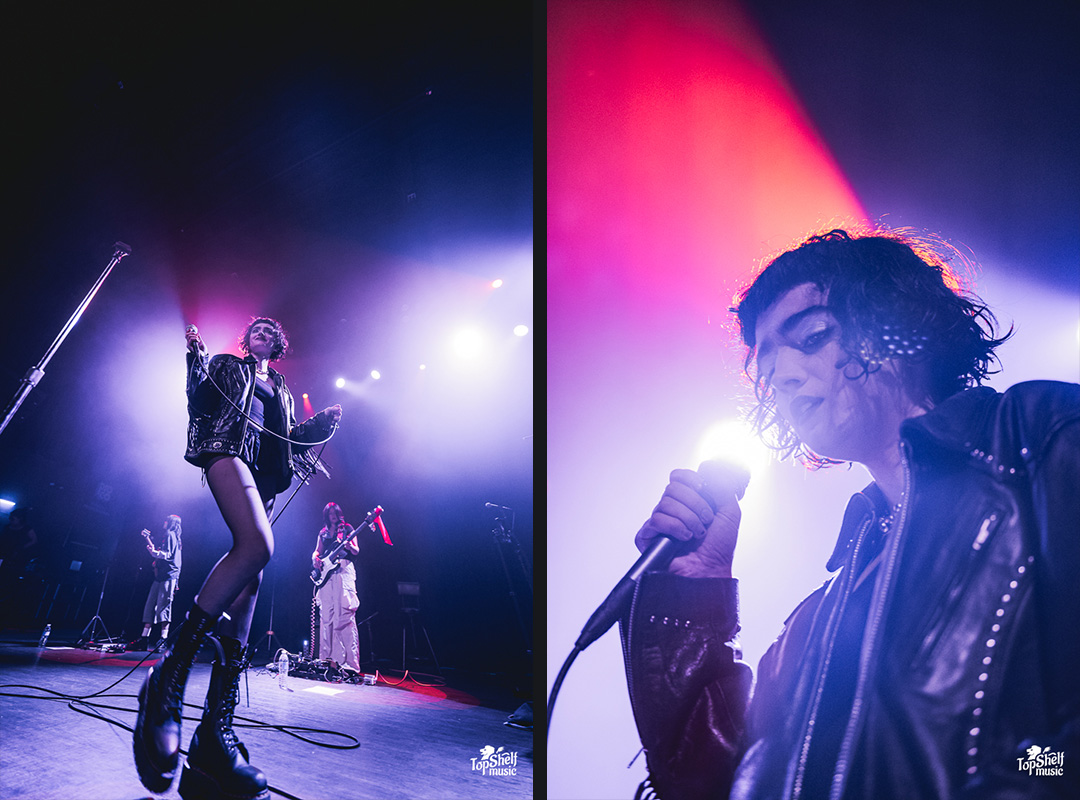 To warm up the night was opener Venus & the Flytraps, a gritty indie pop/rock duo from Nashville, Tennessee. With a team of instrumentalists by their side, Ceci Tomé and Brenna Kassis shared lead vocals, instantly pulling in the audience with their quirky and eccentric presence. Their music gives off this grungey, feminine garage band type of vibe, with an effortless, laidback rhythm that’s — at the same time — so precisely laid out. Seeing their performance for the first time, their music sounded like the perfect blend of Beach Bunny and soccer mommy, with raw yet playful lyrics paired with a jagged, unfiltered sound.
