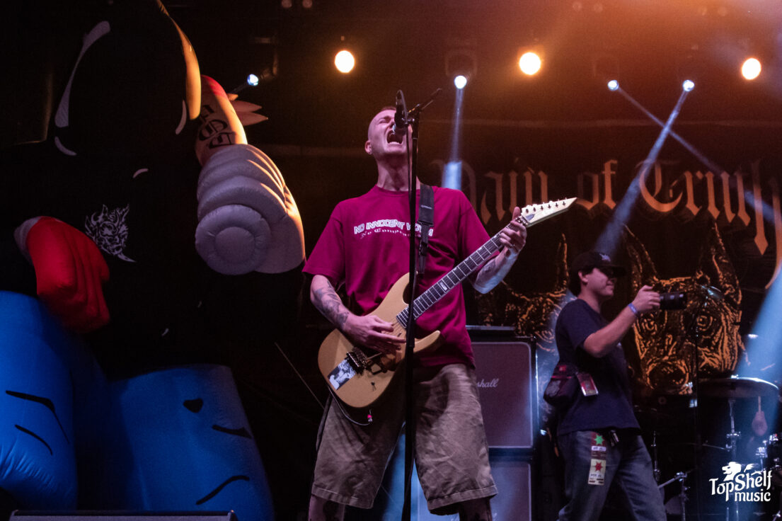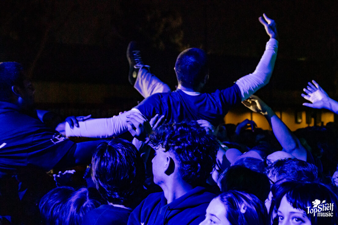 The D.C. duo — consisting of Ryland Heagy and Pat Doherty — proved that two people can make just as much noise as a five-plus-person band. Their technical guitar work, drumming, and upbeat pop punk tunes had the crowd belting lyrics and crowd-surfing from back to front. Tracks like “The Title Track” and their latest release “Back To Life” captured Origami Angel‘s quirky, emo charm, earning respect from those who hadn’t heard of them before, as well as from longtime fans.