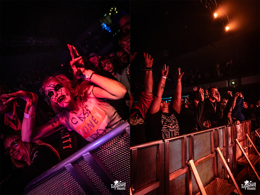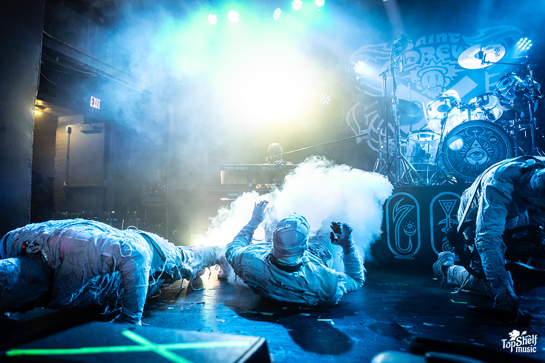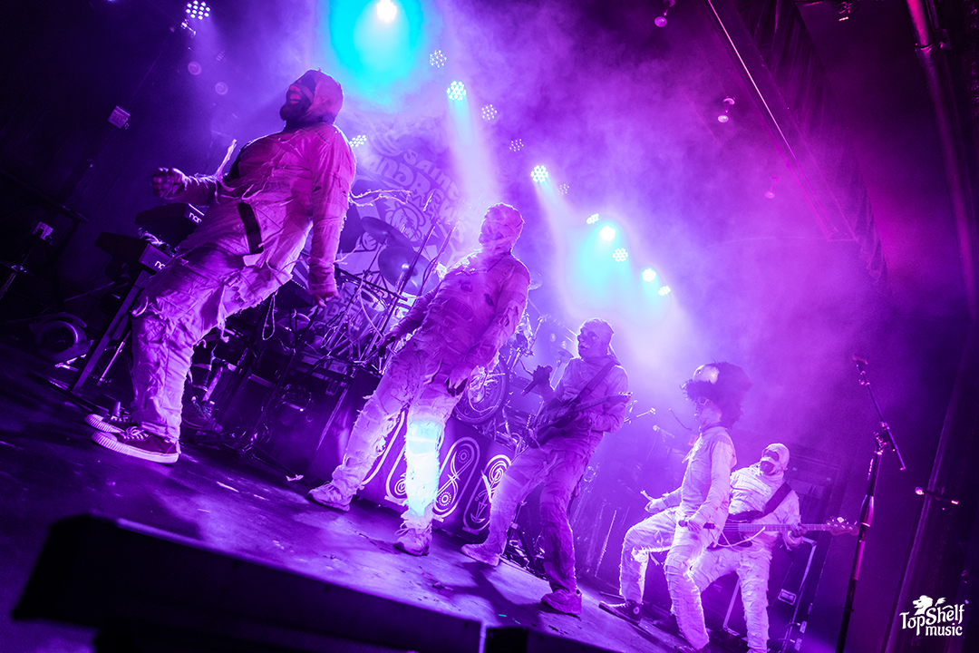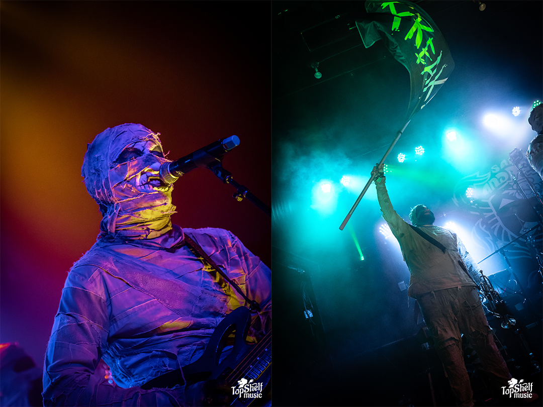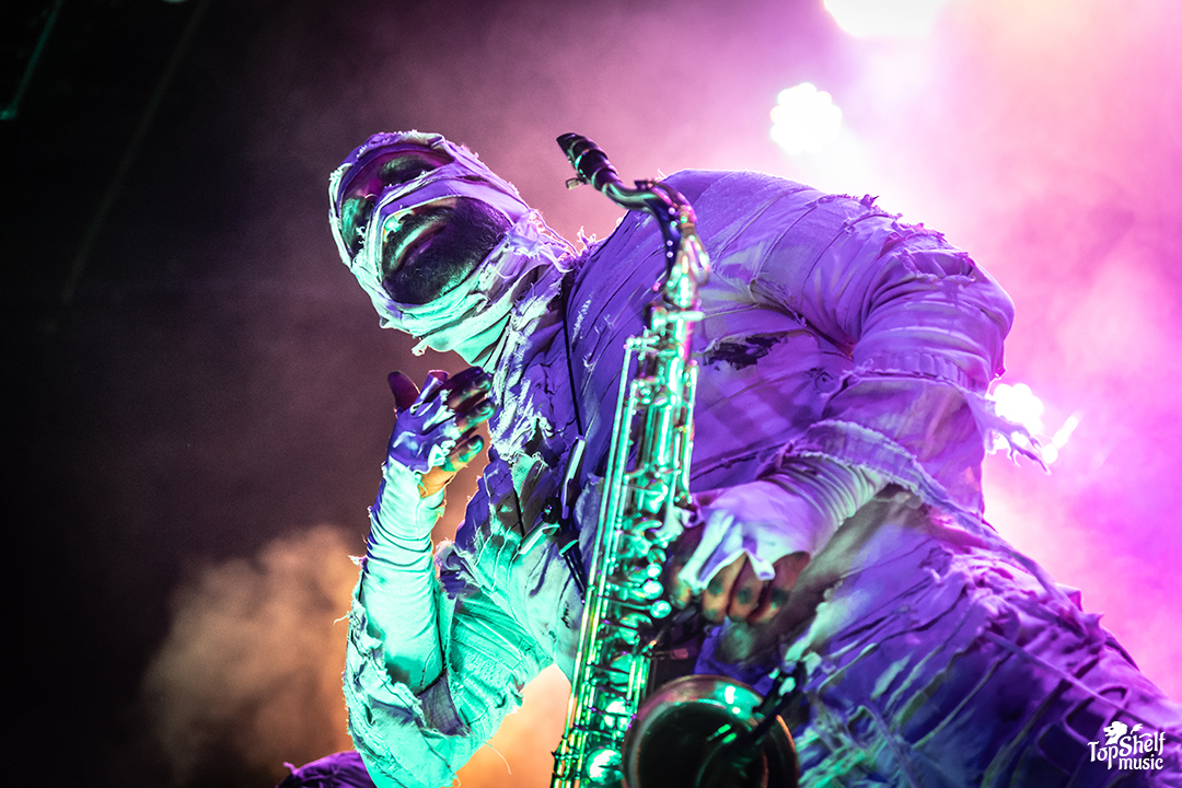 The last band of the night was Here Come The Mummies — a group of musicians, rumored to be super famous. Do we know who these guys are? No, as they perform in mummy costumes. They come out in the back of the room, marching in like there was impending doom seeping throughout the building. Onstage, with smoke swirling around them like there was magic in the air, the band got the crowd dance immediately, complete with their own version of the cha-cha slide. The band members just get silly onstage; even a giant eyeball hat doing push-ups happened at one point!