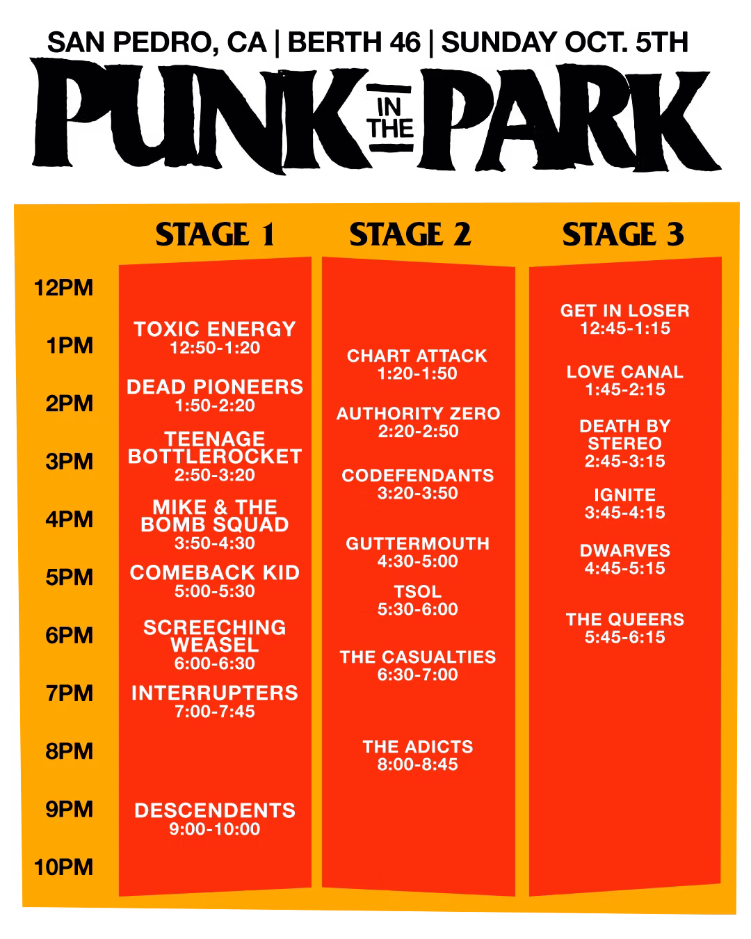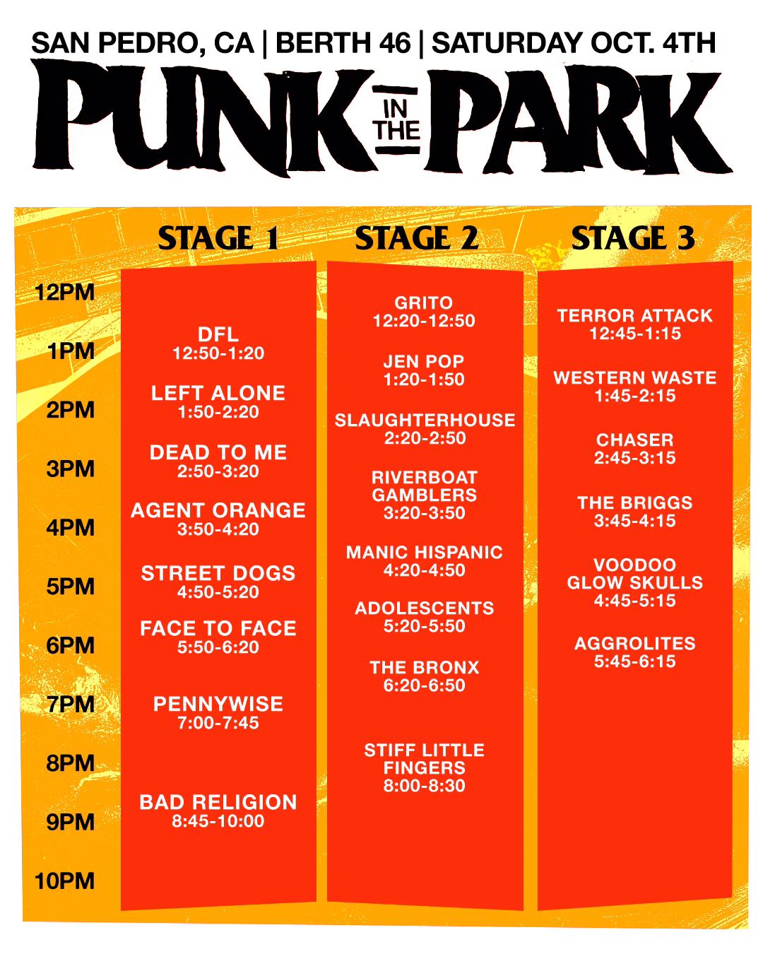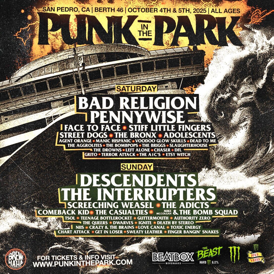 After pulling off one of punk rock’s most memorable send-offs for NOFX last year, Punk In The Park is back at San Pedro’s Berth 46 at the Port of Los Angeles with another solid weekend of music presented by Brew Ha Ha THIS weekend on October 4th and 5th.